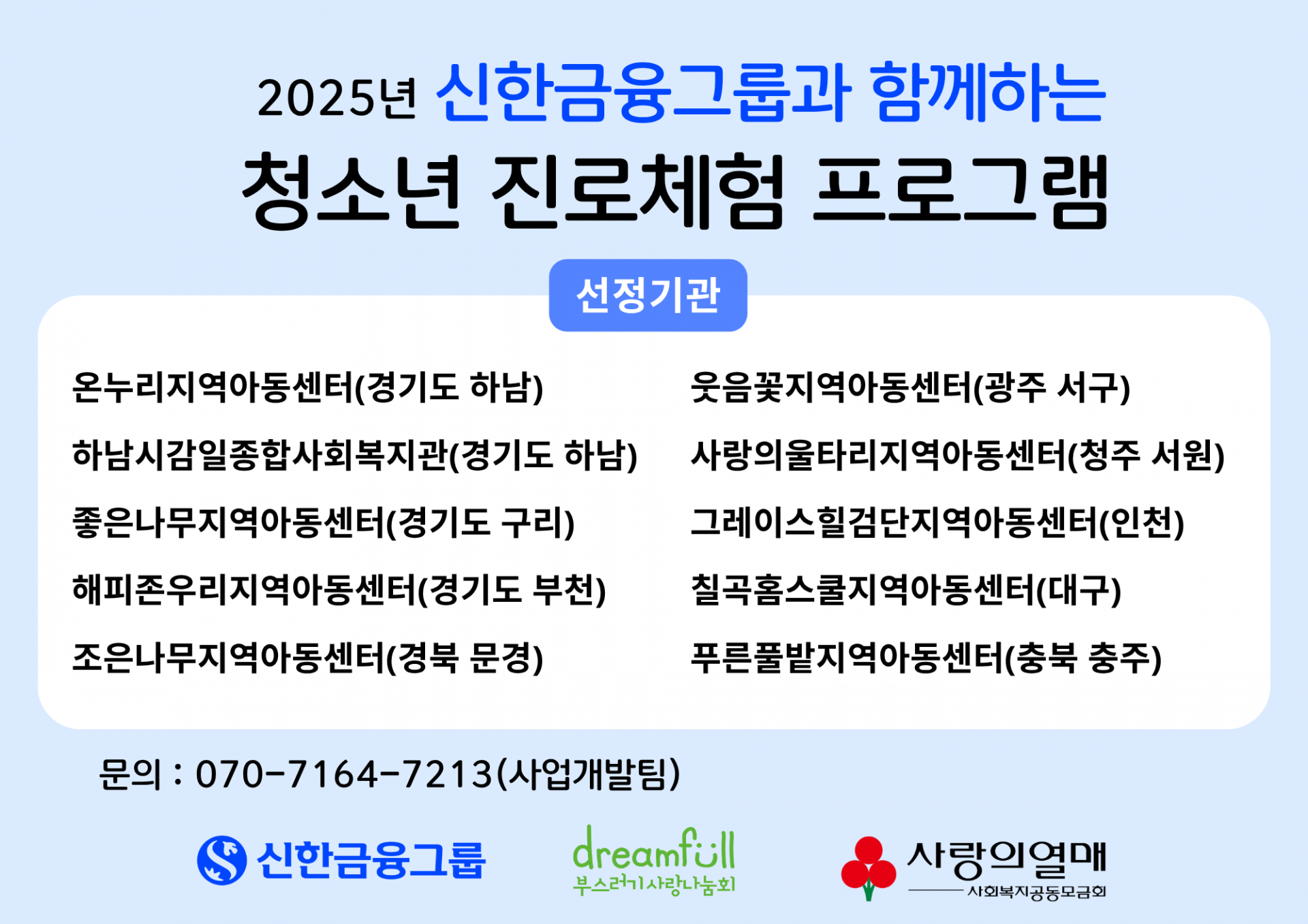 '신한금융그룹과 함께하는 청소년 진로체험 프로그램 및 지역사회 나눔활동' 지원사업에 관심을 가지고