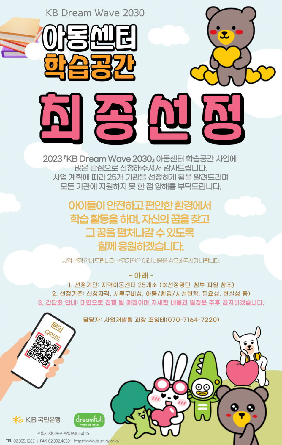 선정되신 기관에 따로 공지해 드리도록 하겠습니다.